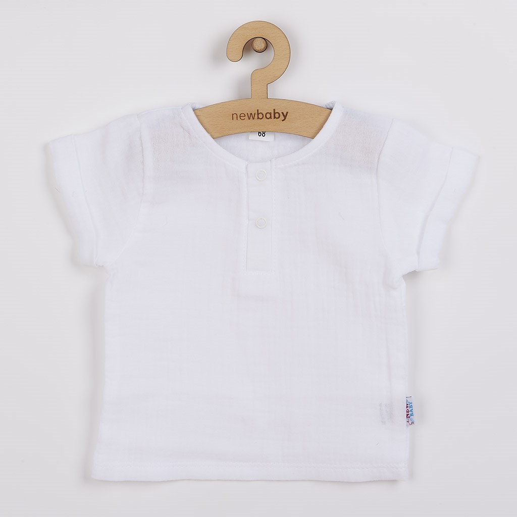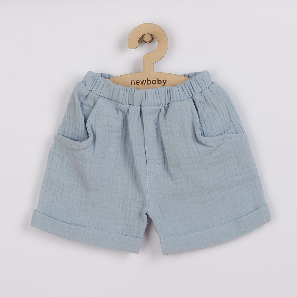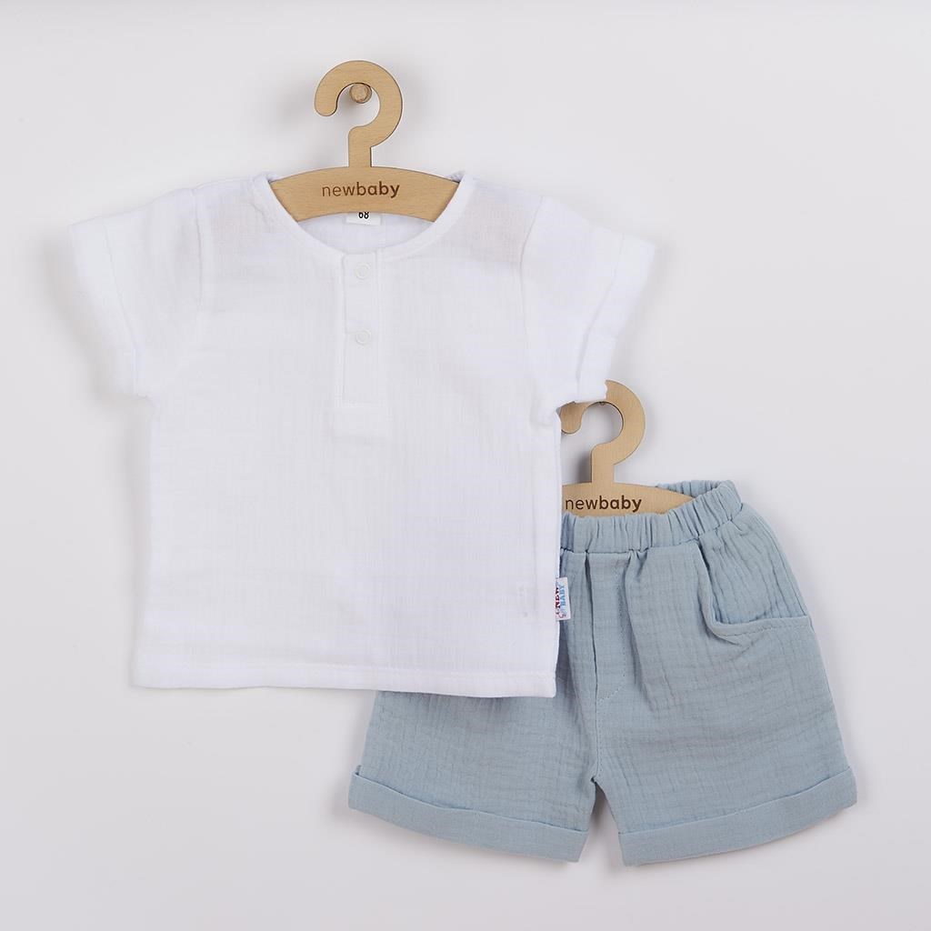 Fashionable 2-piece muslin infant set by Czech brand New Baby Summer Nature Collection for boys. The summer set consists of a t-shirt and shorts. The T-shirt has short sleeves and a perfect fit. The shorts are decorated with pockets and have a wider elastic at the waist, which does not press on the baby's tummy. The set is lightweight and very comfortable to wear. Customer satisfaction is very important to New Baby and that is why we offer you our high quality boys summer kit. 100% cotton.