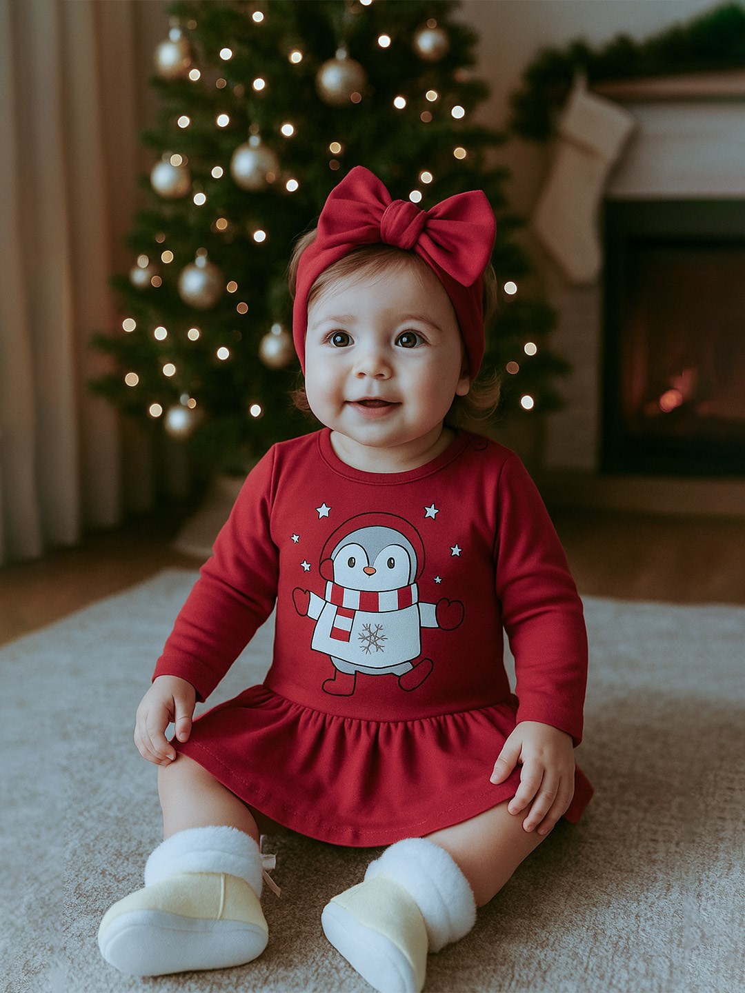 New Baby Winter Penguin Cotton Baby Dress with Headband, size 74 (6-9m)