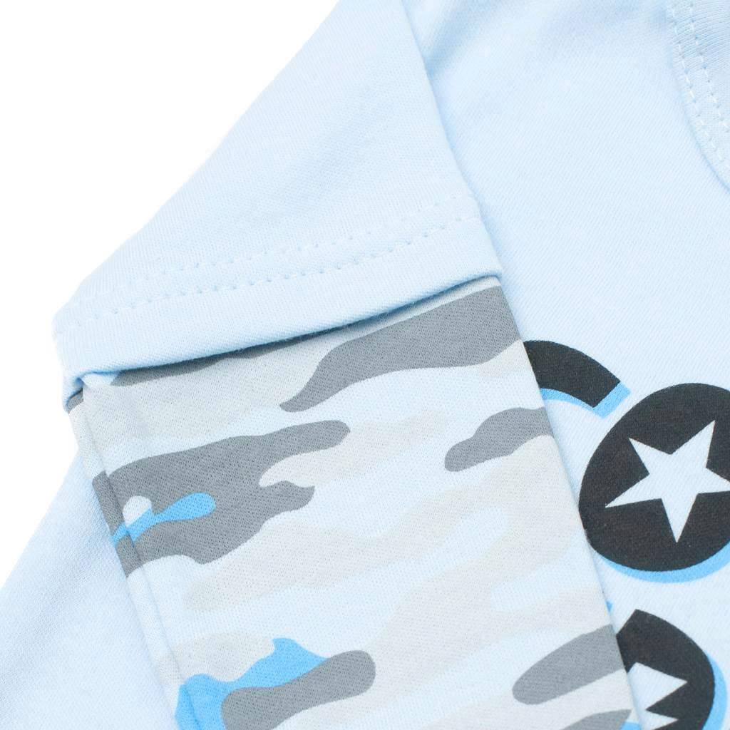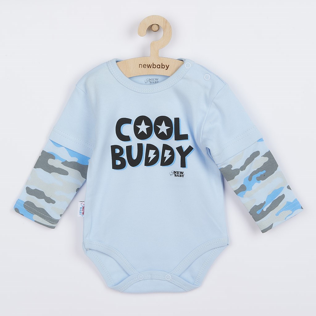 Stylish cotton baby bodysuit with long sleeves by Czech brand New Baby With Love. Baby bodysuit is decorated with COOL BUDDY. The sleeves decorated with a camouflage pattern give the body the right touch. Practical stud fastening on the shoulder and between the legs makes dressing and changing very easy. The bodysuit is an important piece of clothing for babies. With any movement, the baby's buttocks are always covered. We put emphasis on quality and therefore, thanks to the soft, pleasant and high quality material, your baby will feel very comfortable in the body. 100% cotton.