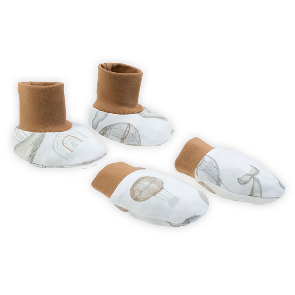 Beautiful and practical Nicol Miki cotton set. The set consists of caps and gloves. The caps and gloves are decorated with pictures and have drawstring cuffs. Fancy dressing knows no bounds and it is up to you how you match the set with the clothes of the Miki collection. 100% cotton.