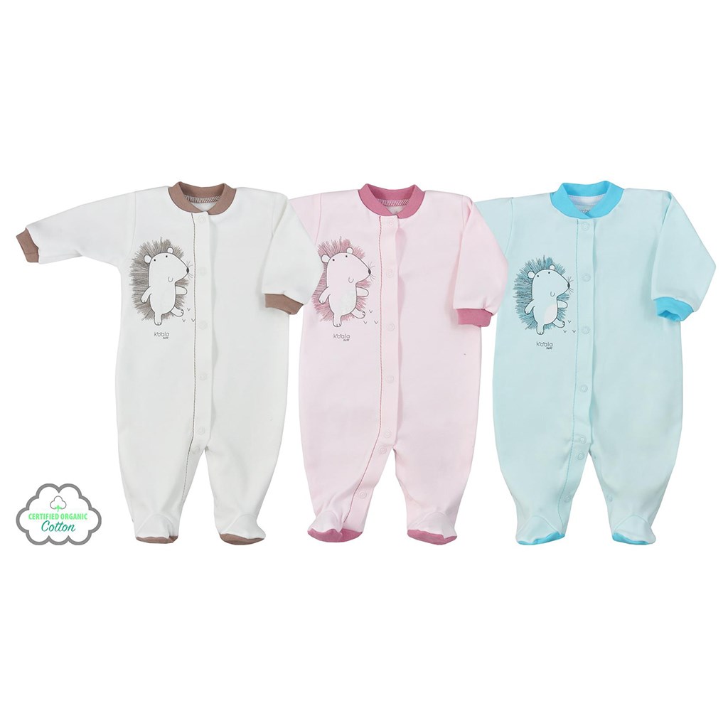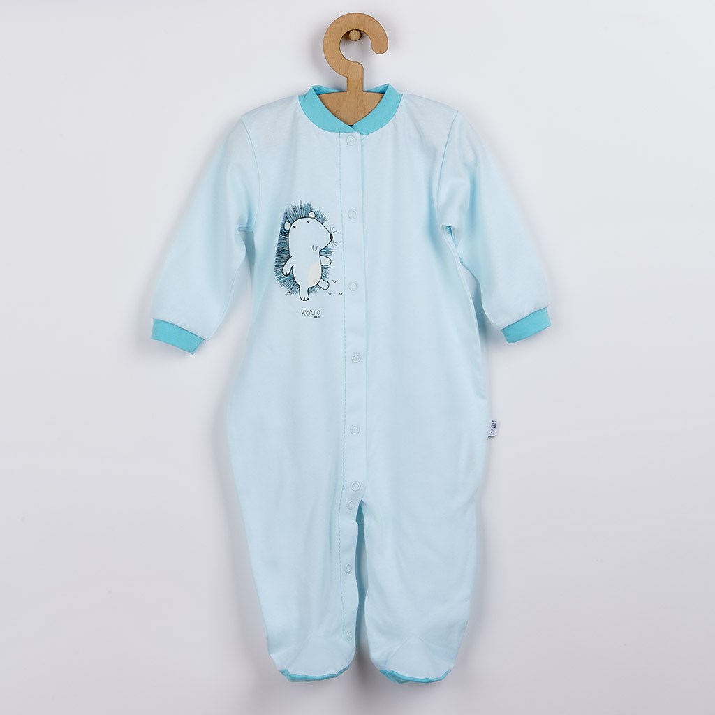 Beautiful baby jumpsuit Koala Forest Friend for babies. The jumpsuit is decorated with a picture of a happy hedgehog and a monochrome trim. The stud fastening along the entire length and between the legs makes dressing and changing very easy. The cover-up is made of organic cotton, which is very high quality, comfortable and soft. Organic-bi-cotton is grown without the use of any chemical sprays in the soil. Toxic chemicals are also not used in the processing and manufacturing of organic cotton products. Organic cotton clothing is perfect for allergy sufferers or children with atopic acne. Thanks to the modern design, the jumpsuit will suit your baby very well. 100% organic cotton.
