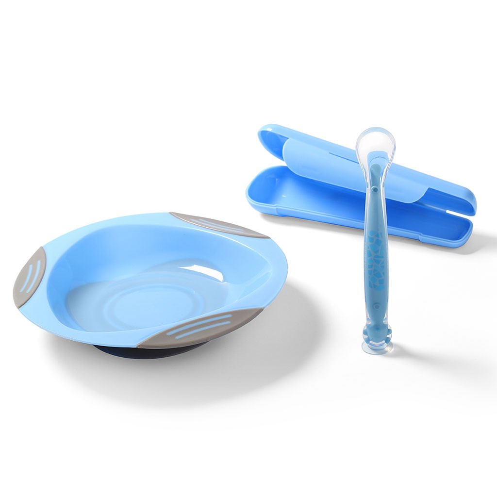 Silicone spoon with suction cup in a case is ideal for home, for a walk or on the go. It has a convenient shape and is ideal to help your baby learn to eat independently. Made of high quality silicone designed for food contact.