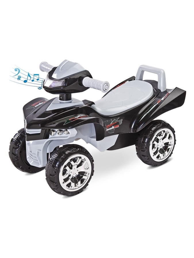 Great quad bike miniRaptor Toyz in cheerful colours. Made of high quality plastic material, it's a great and safe toy. The shape of the toy helps to develop the child's motor skills as they learn to walk. The rider has buttons on the handlebars with melodies, a light, and a storage compartment under the seat for toys. The imitation steering elements make the toy even more attractive. The rider is designed for both the smallest children who can sit and for children who have already learned to walk. You will have a lot of fun and entertainment with the quad bike. The Mini Raptor has many advantages. It looks great, has a comfortable wide seat, rubber handlebars, large plastic wheels. Batteries are not included.