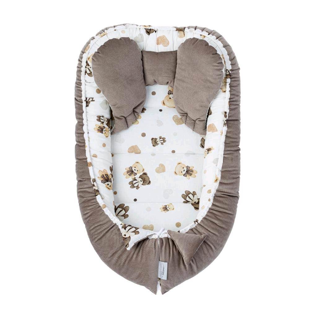 Velvet Belisima Me and You baby nest. It gives babies a feeling of security, follows the shape of mom's body and baby feels as comfortable as in mom's tummy. The nest also includes a stabilising pillow. The baby sleeps much better and is calmer. Composition. Dimensions: approx. 55x75 cm, internal dimensions: approx. 35x59 cm.