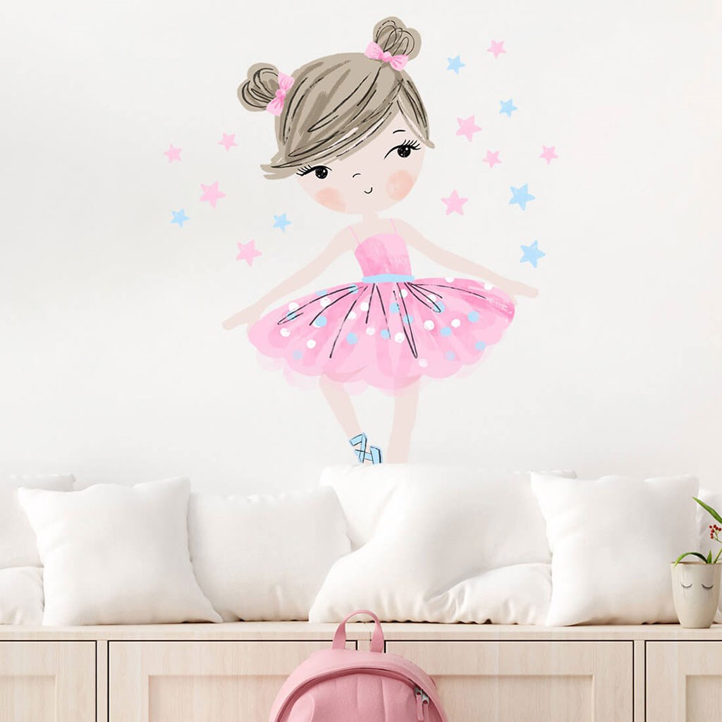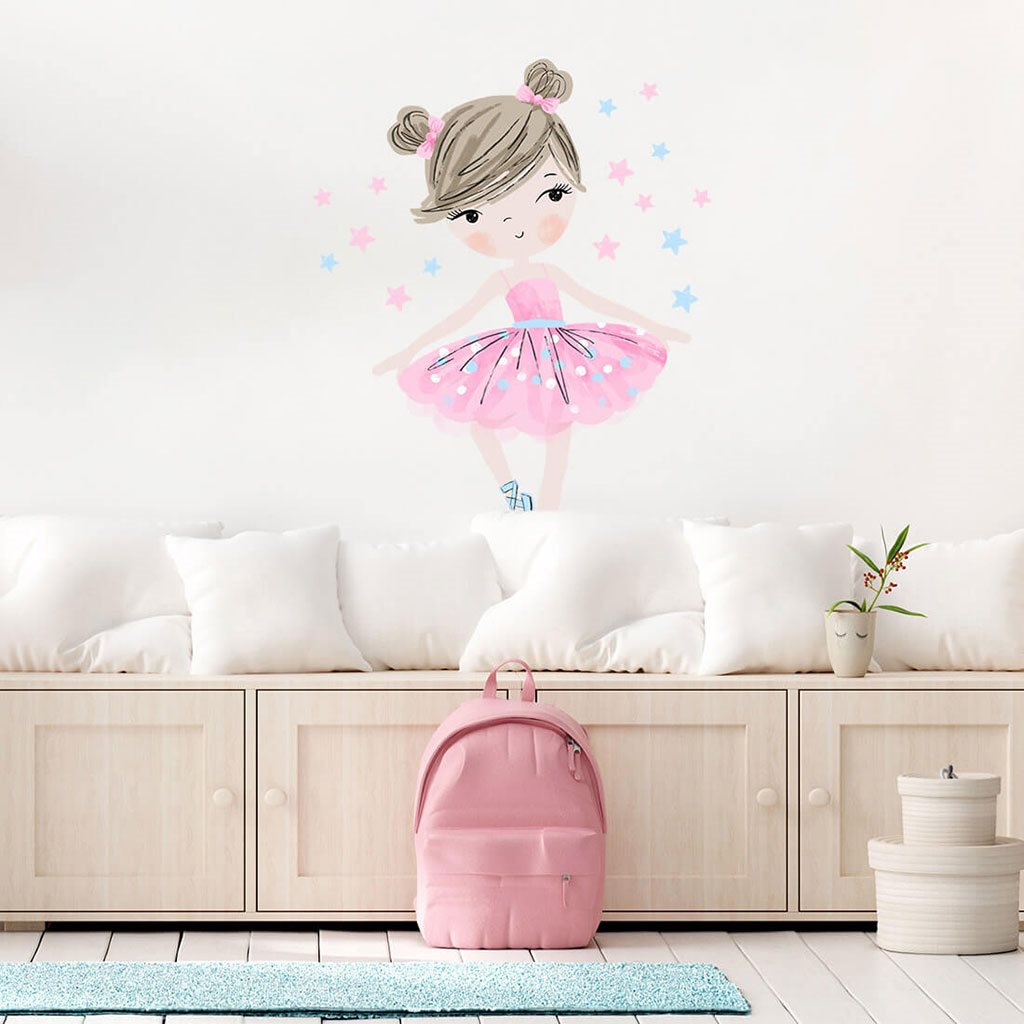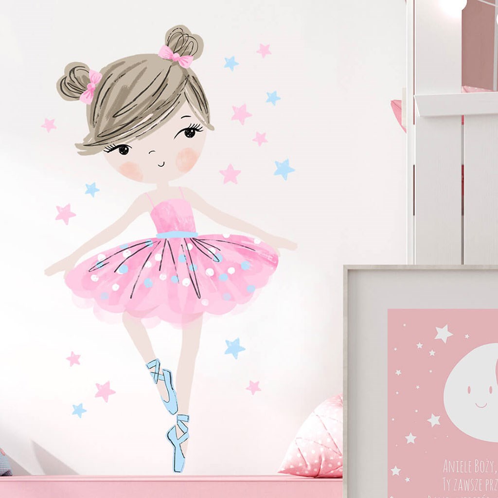 Beautiful wall sticker Ballerina. Beautiful tulle dress, hair up and ballet shoes - these are the attributes of every ballerina. Performing on stage in front of a huge audience and a standing ovation at the end... that's just emotion... Why not put a little of that magic in your children's bedrooms? Nothing easier! With our ballerina stickers, every girl will feel like she's on the big stage in a phenomenal dress. The sticker is a beautiful decoration, while protecting the wall from dirt or damage. The sticker is secured with a special matte laminate, which protects it from scratches during everyday use and also makes it easier to stick - the film is thicker and easier to transfer to the wall. If you're looking for the perfect way to brighten up your child's room, our wall stickers are the right choice. Order them today and make your child happy.