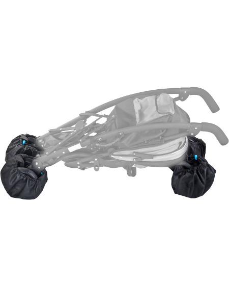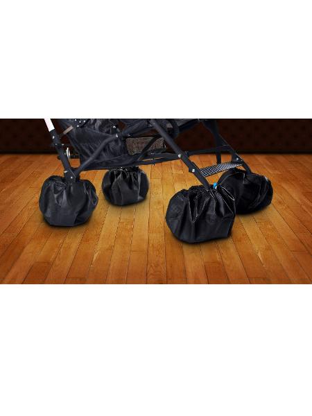 Practical and universal wheel protectors for stroller wheels. Useful while travelling in the car and at home, they allow you to keep clean. The protectors have one size and a tightening elastic, which makes them fit all sizes of stroller wheels. The wheel protectors are made of durable, water-resistant material. Quick and easy to assemble and disassemble, easy to clean and maintain. Package contains 4 pieces, diameter 25 cm.