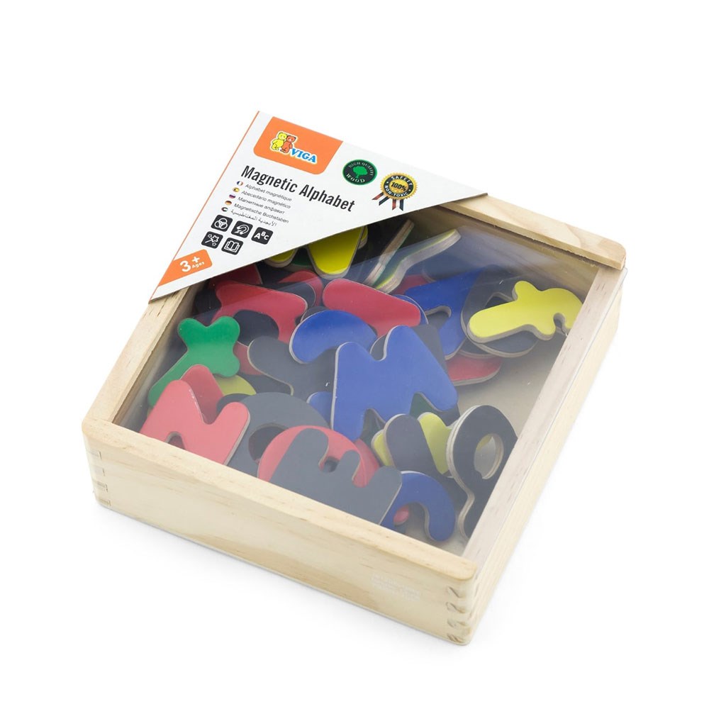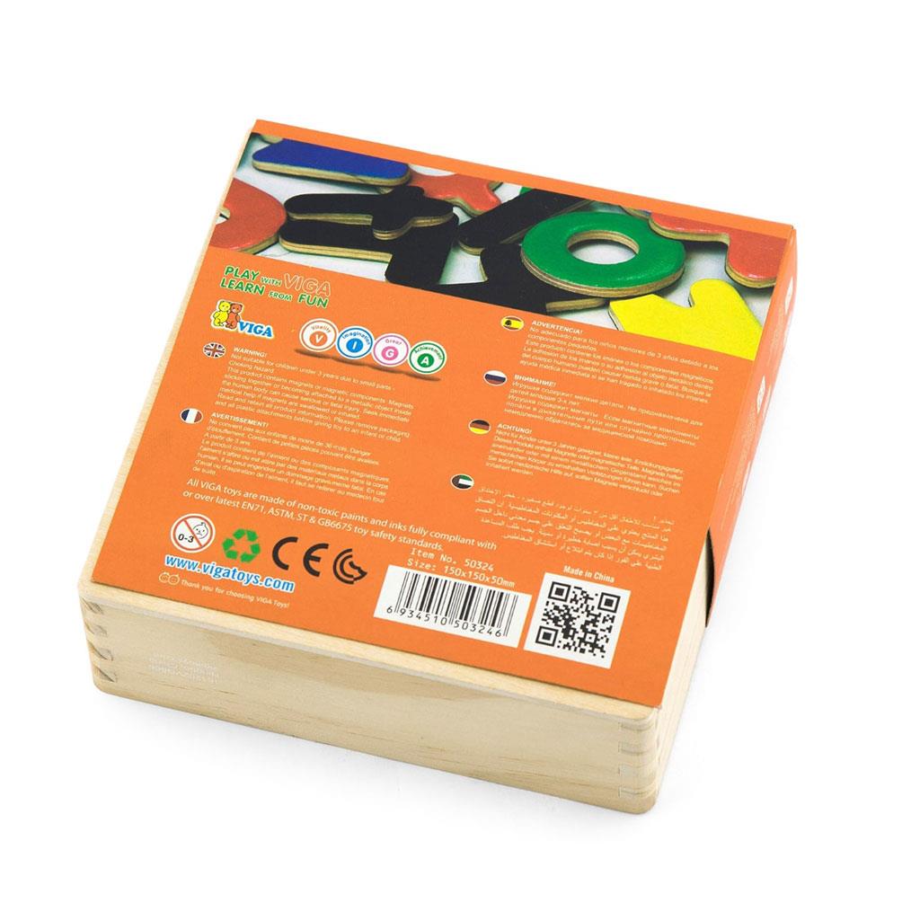Magnetic letters are packaged in an aesthetic wooden box with a clear acrylic window for easy storage and are ideal as a gift.